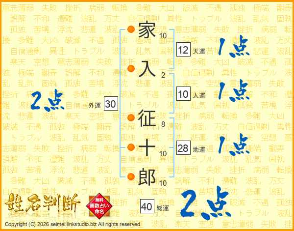 家入征十郎さんの総運は40画の2点!