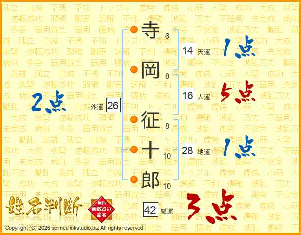 寺岡征十郎さんの総運は42画の3点!