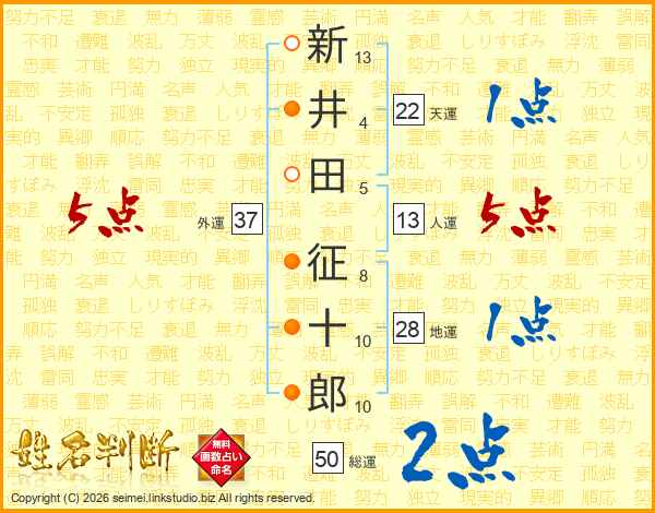新(13画)井(4画)田(5画) 征(8画)十(10画)郎(10画)