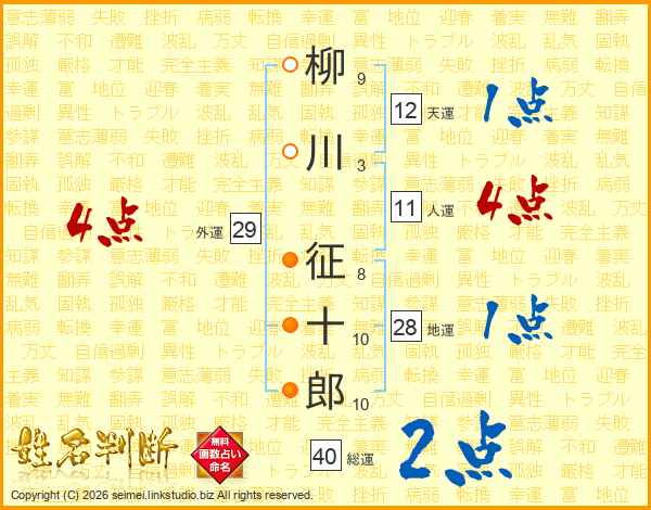 柳川征十郎さんの総運は40画の2点!