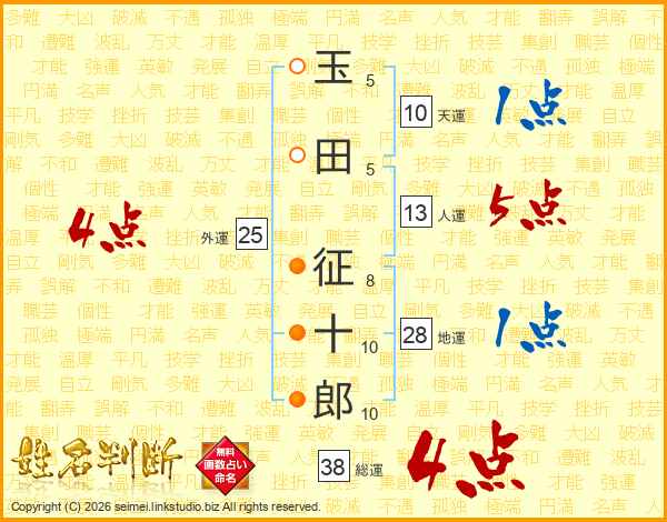玉田征十郎さんの総運は38画の4点!