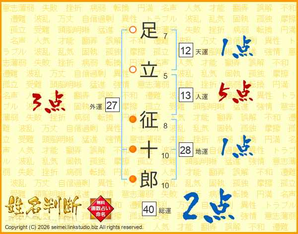足立征十郎さんの人運は13画の5点!