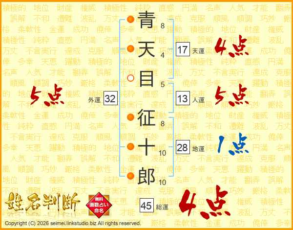 青天目征十郎さんの総運は45画の4点!