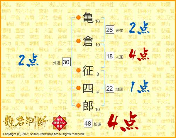 亀倉征四郎さんの天運は26画の2点!