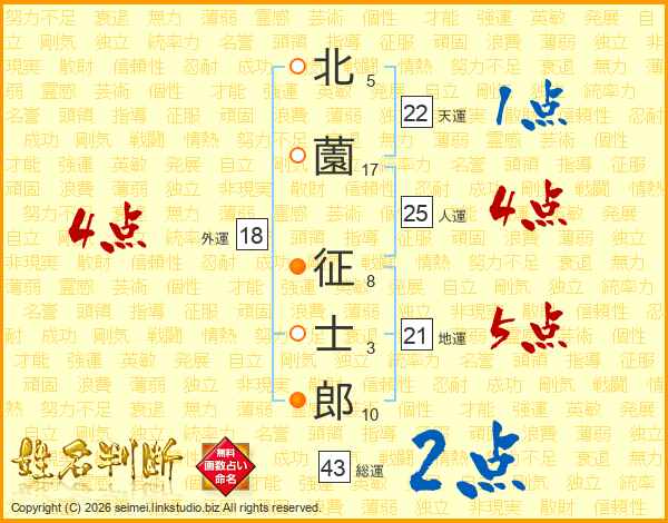 北(5画)薗(17画) 征(8画)士(3画)郎(10画)