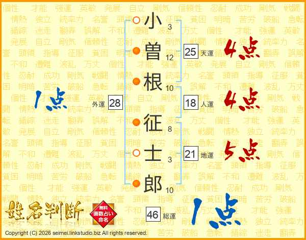 小曽根征士郎さんの天運は25画の4点!
