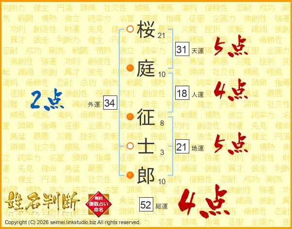桜庭征士郎さんの総運は52画の4点!