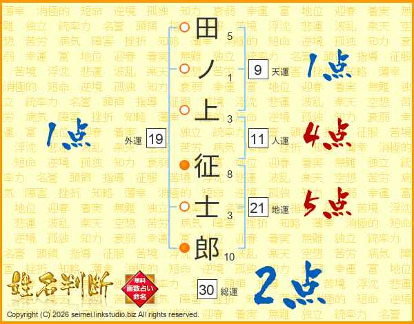 田ノ上征士郎さんの総運は30画の2点!