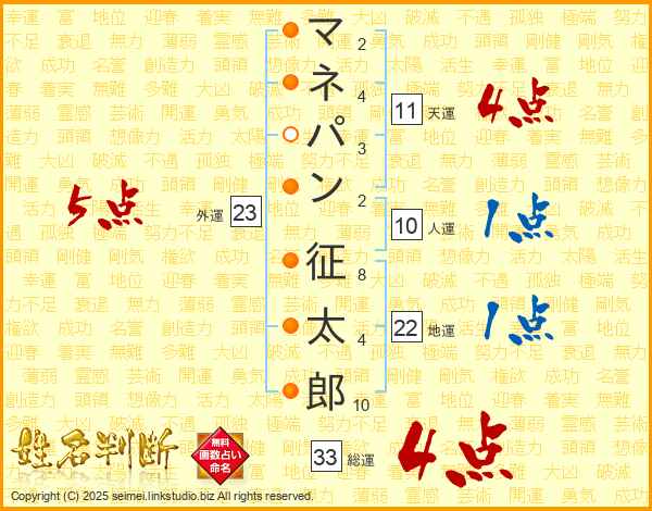 マネパン征太郎さんの総運は33画の4点!