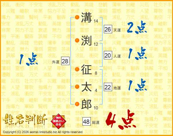 溝渕征太郎さんの天運は26画の2点!