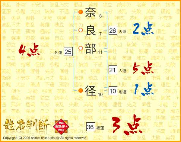 奈(8画)良(7画)部(11画) 径(10画)