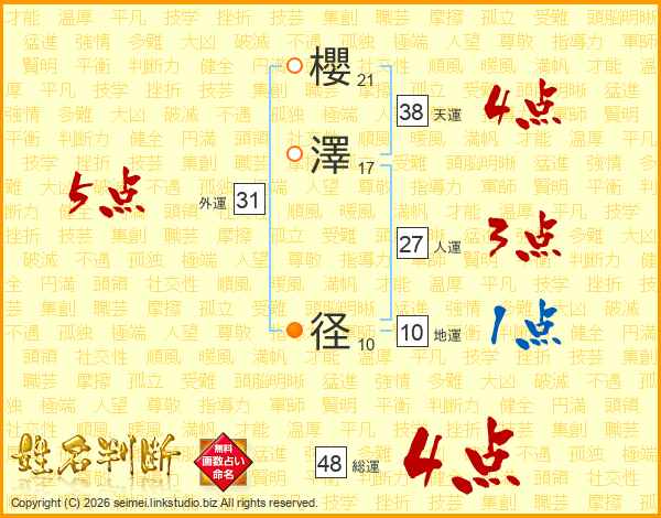 櫻澤径さんの天運は38画の4点!