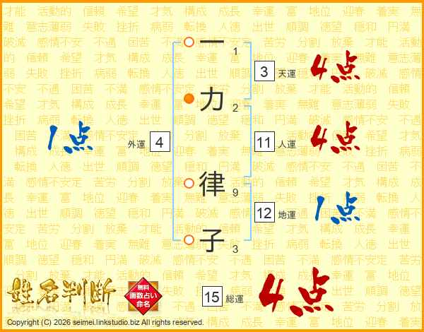 一力律子さんの総運は15画の4点!