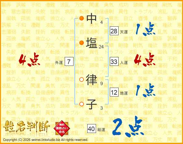 中塩律子さんの総運は40画の2点!