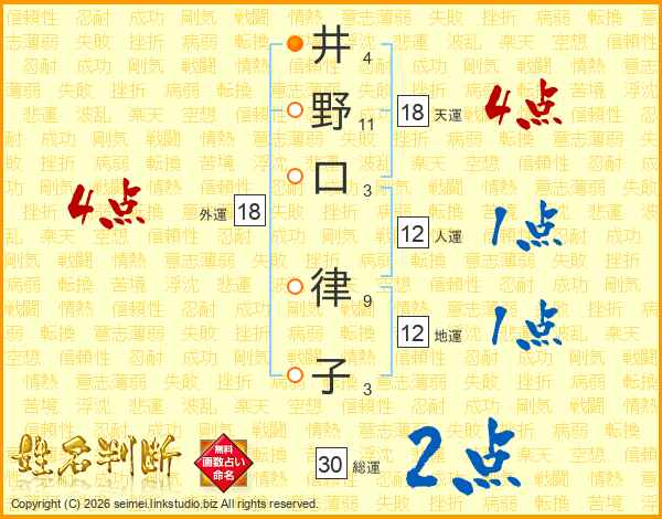 井野口律子さんの天運は18画の4点!