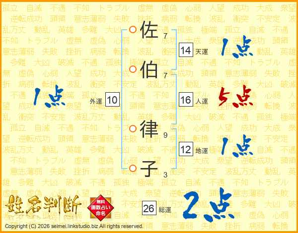 佐伯律子さんの総運は26画の2点!