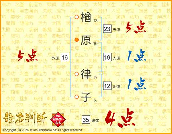 楢原律子さんの総運は35画の4点!