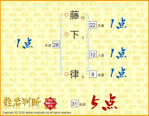 藤下律さんの総運は31画の5点!