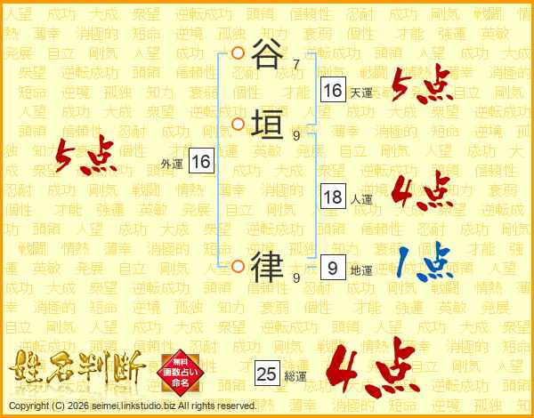 谷垣律さんの総運は25画の4点