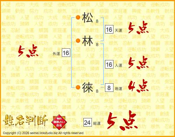 松林徠さんの総運は24画の5点!