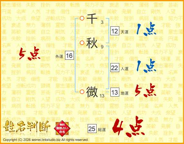 千秋微さんの総運は25画の4点!