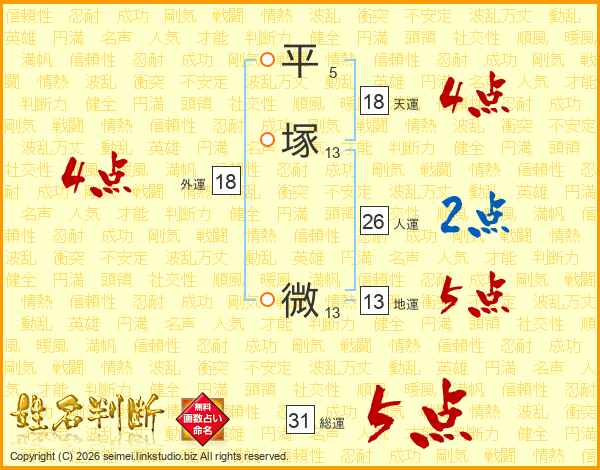 平塚微さんの外運は18画の4点!