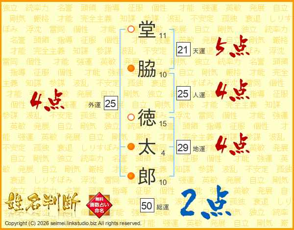 堂(11画)脇(10画) 徳(15画)太(4画)郎(10画)