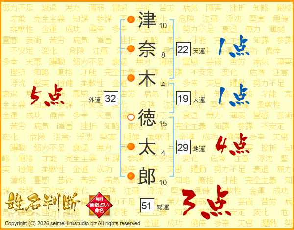 津奈木徳太郎さんの総運は51画の3点!