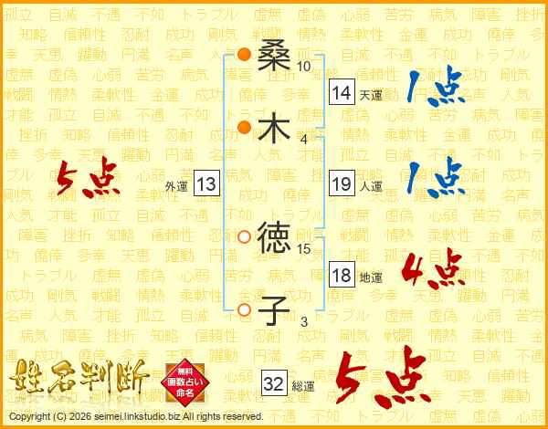桑木徳子さんの総運は32画の5点!