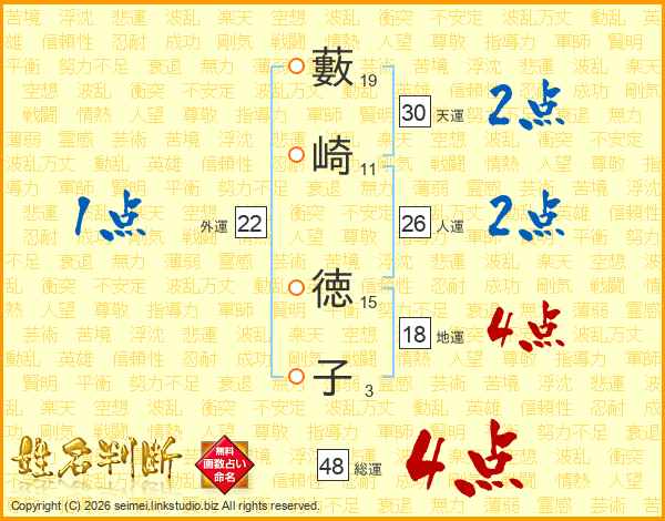 藪崎徳子さんの総運は48画の4点!