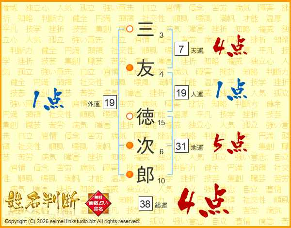 三友徳次郎さんの総運は38画の4点!
