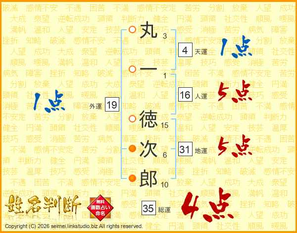 丸一徳次郎さんの総運は35画の4点!