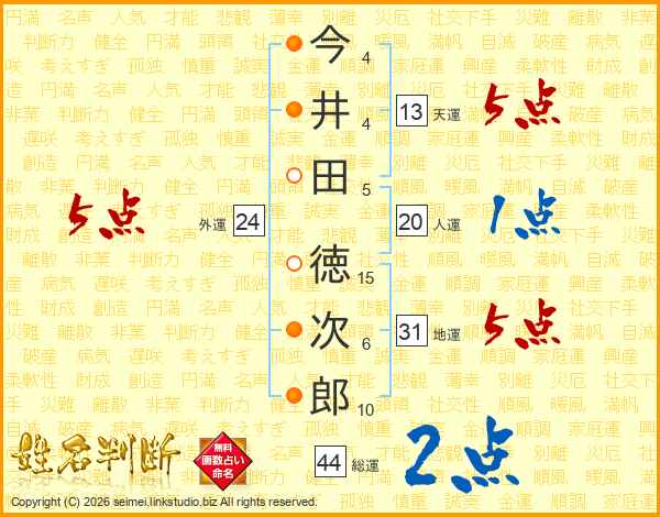 今井田徳次郎さんの天運は13画の5点!