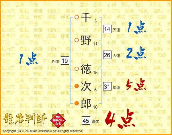 千野徳次郎さんの総運は45画の4点!