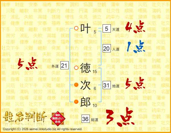 叶徳次郎さんの外運は21画の5点!