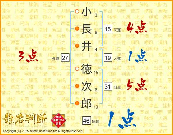 小(3画)長(8画)井(4画) 徳(15画)次(6画)郎(10画)