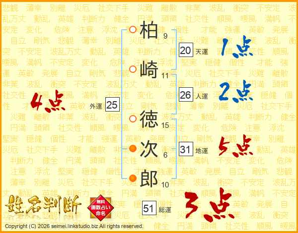 柏崎徳次郎さんの人運は26画の2点!