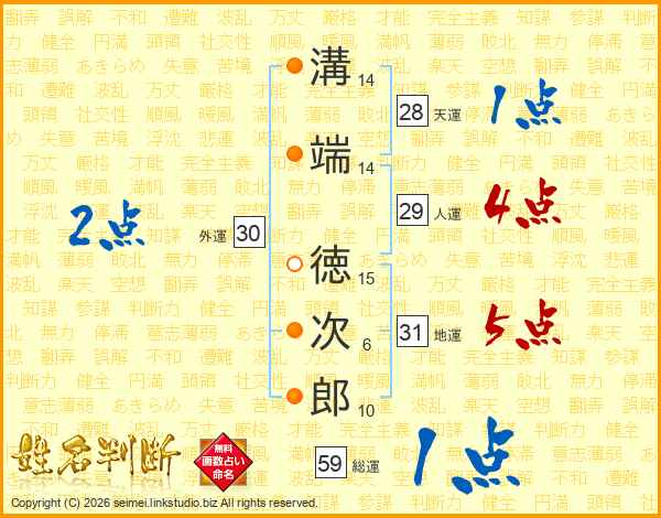 溝(14画)端(14画) 徳(15画)次(6画)郎(10画)