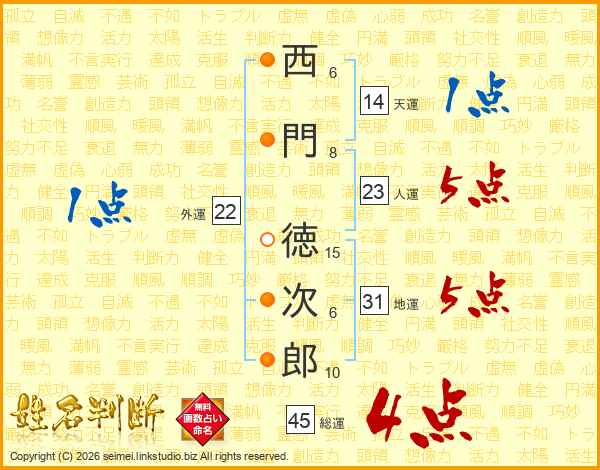 西門徳次郎さんの総運は45画の4点!