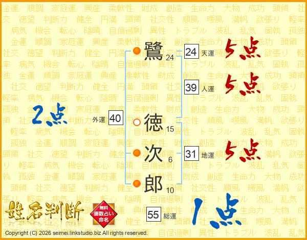 鷺徳次郎さんの人運は39画の5点!