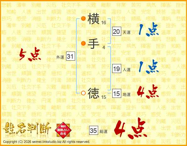 横手徳さんの総運は35画の4点!