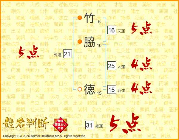 竹脇徳さんの総運は31画の5点!