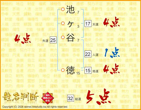 池ヶ谷徳さんの総運は32画の5点!