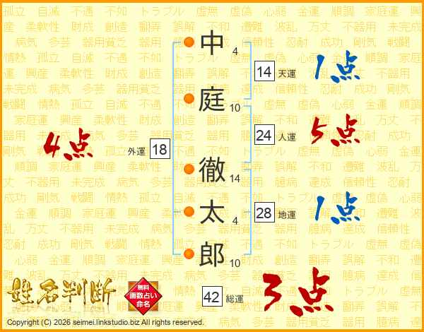 中庭徹太郎さんの人運は24画の5点!