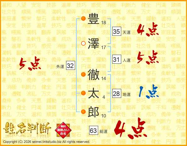 豊澤徹太郎さんの総運は63画の4点!