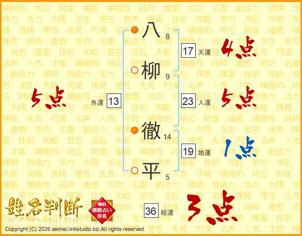 八柳徹平さんの人運は23画の5点!