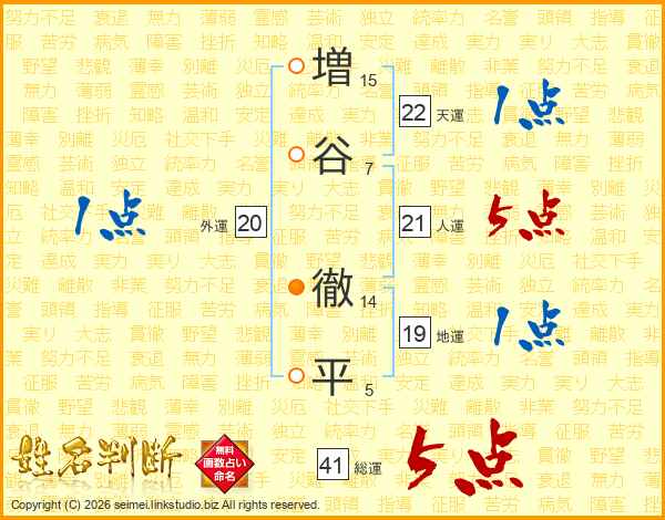 増(15画)谷(7画) 徹(14画)平(5画)