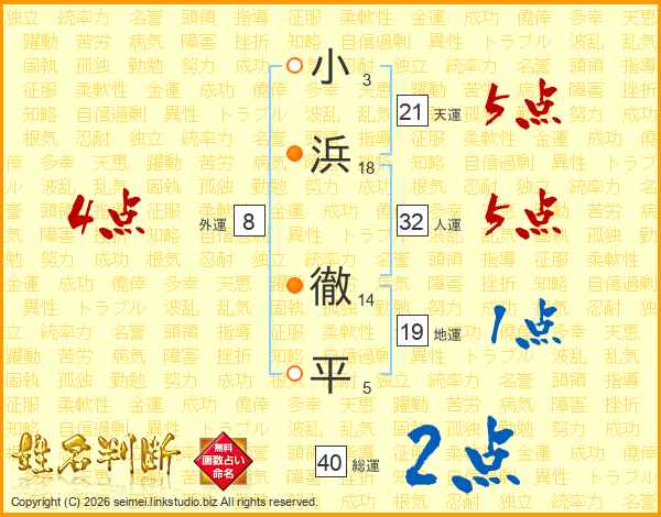 小浜徹平さんの総運は40画の2点!