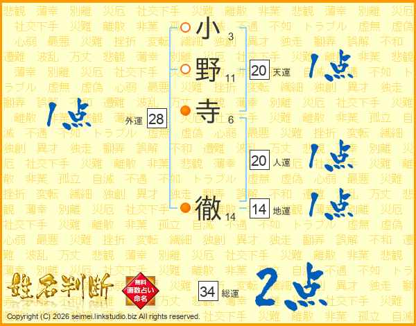 小野寺徹さんの総運は34画の2点