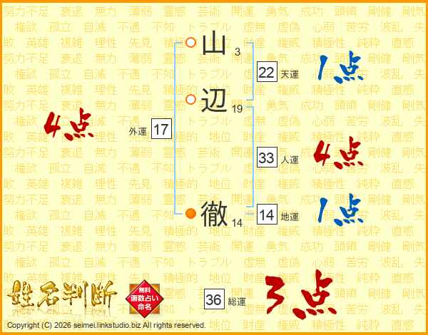 山辺徹さんの人運は33画の4点!